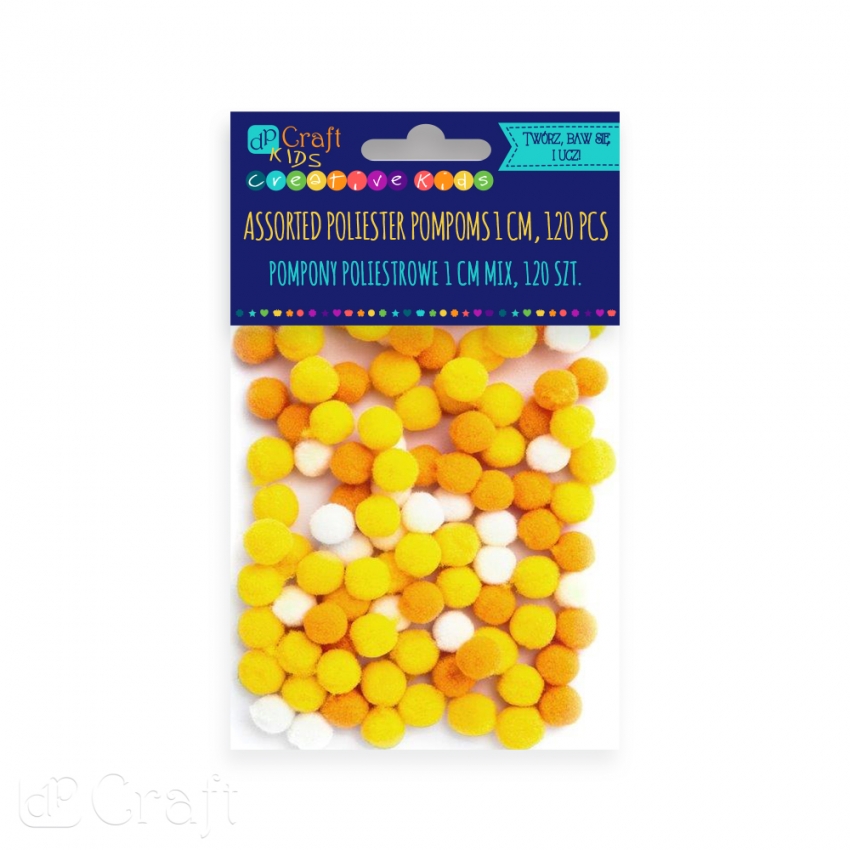 Pompony poliestrowe DPCRAFT 1cm mix ¿ó³ty, 120 szt.