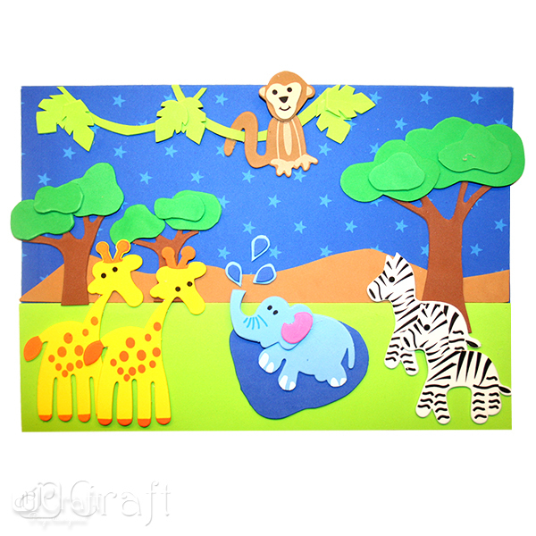 Zestaw warstwowych naklejek z pianki, z motywami zwierząt z safari, w 4 różnych wzorach. Świetnie nadają się do wszelkiego rodzaju dziecięcej aktywności twórczej, jak również do zdobienia projektów kreatywnych takich jak kartki okolicznościowe, albumy, pudełka czy opakowania.