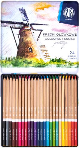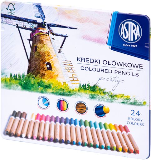 Kredki ołówkowe ASTRA Prestige 24 kolory z drewna cedrowego w metalowym pudełku