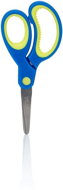 nożyczki ze stali nierdzewnej • uchwyt dopasowany do dłoni osób praworęcznych • zaokrąglone końce • podziałka • 13 cm