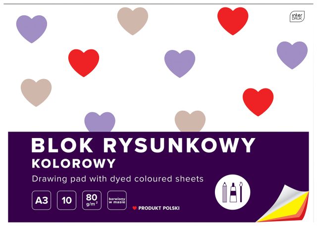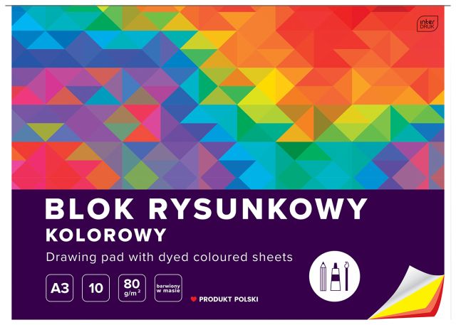 Blok rysunkowy kolorowy A3 10k. INTERDRUK Barwiony w masie