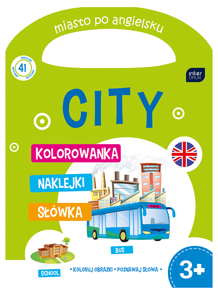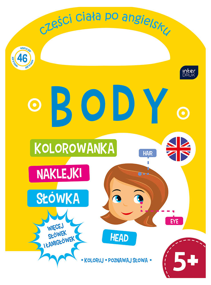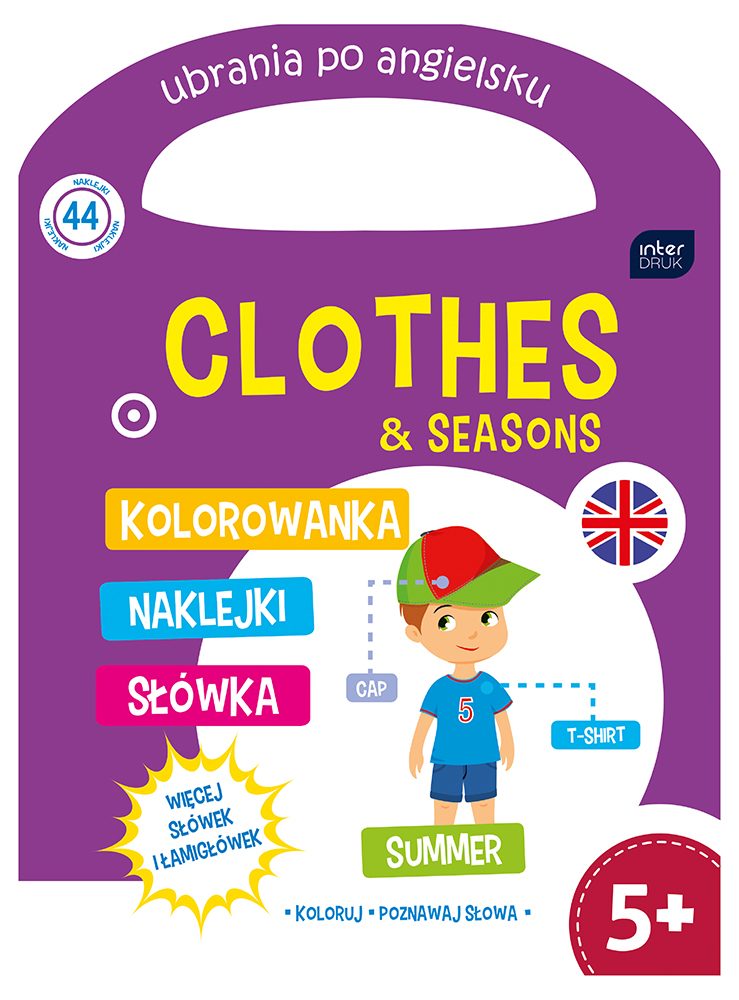 Kolorowanka z naklejkami dla dzieci powyżej 3 lat. maluchy nieumiejące czytać, naklejając angielskie słówka, lepiej je zpamiętują i oswajają się z ich znaczeniem.