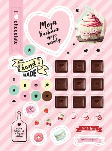 Przepi¶nik na podwójnej spirali zamykany na gumkę w formacie A5. W twardej oprawie ze złotym zdobieniem. W ¶rodku strona tytułowa z miejscem na dane wła¶ciciela, naklejki, strony na własne przepisy, strony z gotowymi przepisami, kuchenny miniporadnik (w tym przydatny w każdej kuchni przelicznik miar i wag), a także kieszonka na przepisy. Kartki w kropki z kolorowymi registrami umożliwi± kreatywne notowanie przepisów. Produkt dostępny jest w różnych, oryginalnych wzorach. Doskonały prezent dla miło¶ników gotowania. Idealny prezent dla przyjaciółki, mamy lub cioci.