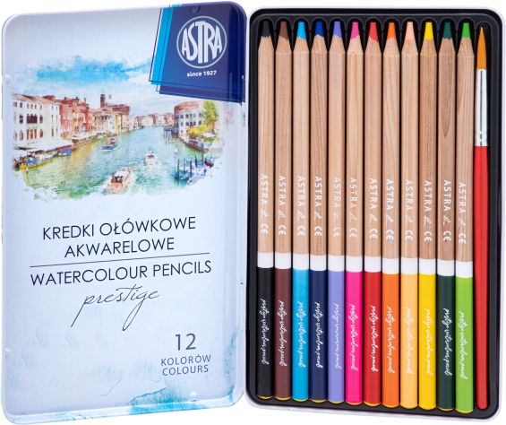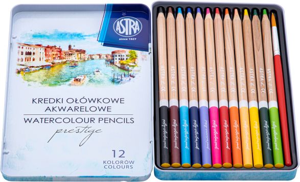Kredki akwarelowe ASTRA Prestige z drewna cedrowego 12 kolorów