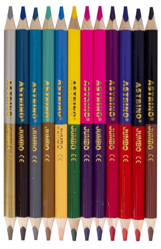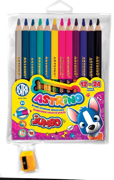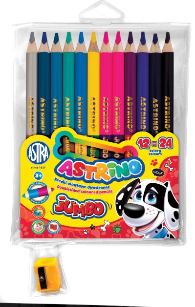 Kredki ołówkowe Astrino okrągłe jumbo 12=24 kolory w drewnie + temperówka
