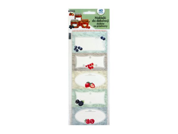 Zestaw 40 prostokątnych naklejek - etykiek do dekoracji słoików na przetwory. Mix wzorów