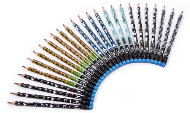 Trójkątne, grube ołówki z zabawnym nadrukiem. Kotki, pieski, szopy, słodkie pandy, gamerski motyw, a może ołówek w super, muzycznym klimacie? Każdy znajdzie wzór idealny dla siebie! Ergonomiczny i trójkątny kształt ułatwi prawidłowy chwyt i wygodne użytkowanie. Drewniane ołówki z rysikiem HB zakończone gumką, sprawdzą się doskonale podczas nauki pisania i rysowania. To idealna propozycja dla dzieci w wieku wczesnoszkolnym.