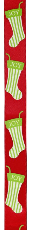 Wstążka dekoracyjna xmas, kolor: czerwony z nadrukiem skarpet, 1,5 cm x 3 m.