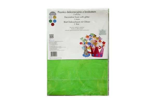 Pianka dekoracyjna z brokatem jest idealna do zdobień ekskluzywnych opakowań oraz innych przedmiotów reklamowych. Można z niej tworzyć niesamowite ozdoby. Łatwe do wycinania, zszywania i sklejania. Świetne do zabawy dla dzieci, polecane na zajęcia plastyczne w szkole i przedszkolu. W opakowaniu znajduje się 5 kolorowych arkuszy - zielony, srebrny, złoty, niebieski, czerwony