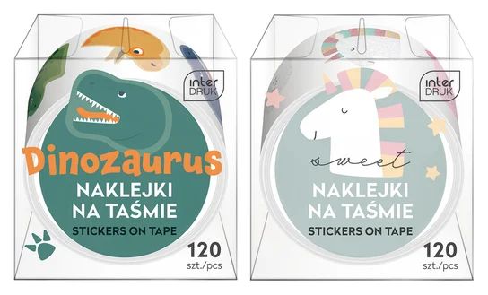 Naklejki na taśmie idealne do dekorowania, pakowania prezentów, albumów, kartek okolicznościowych. 120 naklejek w opakowaniu.
