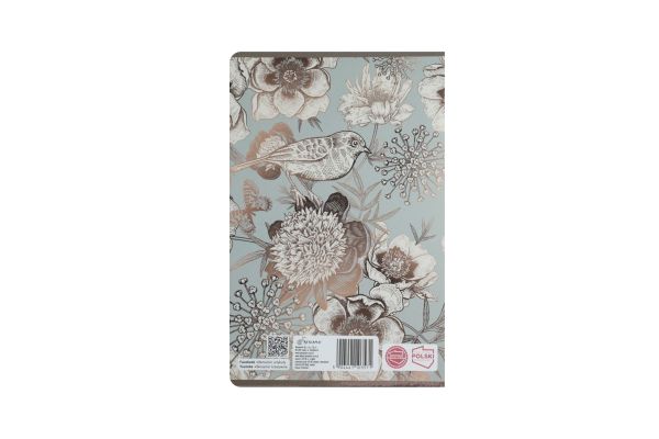 Zeszyt formatu A5. Ilość kartek 80, liniatura kratka. Okładka pokryta lakierem uv oraz punktowo metalizowana, zadruk kolorowy. Wysokość:21cm Szerokość: 14,7 cm. Cztery wzory