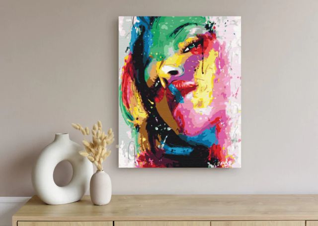 Obraz malowany po numerach o wymiarach 40×50 cm przedstawia modernistyczny portret kobiety. Kolorystyka jest intensywna i niebanalna. Szkic przedstawia wyraźnie wytyczone linie i detale, co ułatwia proces malowania. Zestaw farb składa się z 24 różnych kolorów, które są oznaczone numerem ułatwiającym dopasowanie. Obraz jest idealny dla osób, które lubią malować i chcą rozwijać swoje umiejętności plastyczne.