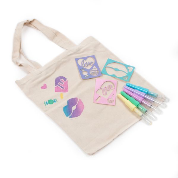 Markery do tkanin w sprayu Sweet Love z szablonami Kidea. W opakowaniu znajduje się pięć markerów w pastelowych kolorach: żółtym, różowym, fioletowym, niebieskim i zielonym oraz trzy arkusze z szablonami. Przed rozpoczęciem dekorowania wystarczy włożyć kartkę pomiędzy warstwy materiału, a następnie przyłożyć wybrany szablon do tkaniny i dmuchając w ustnik markera rozprowadzić tusz. Markery są niezmywalne i nadają się do ozdabiania koszulek, butów czy materiałowych toreb. Po upływie 24h można wyprać udekorowaną tkaninę w 30 stopniach. Markery do tkanin w sprayu to kreatywny pomysł na zabawę modą. Dzieki różnorodności wzorów można stworzyć wiele unikatowych stylizacji. Markery to również świetny pomysł na prezent na każdą okazję.