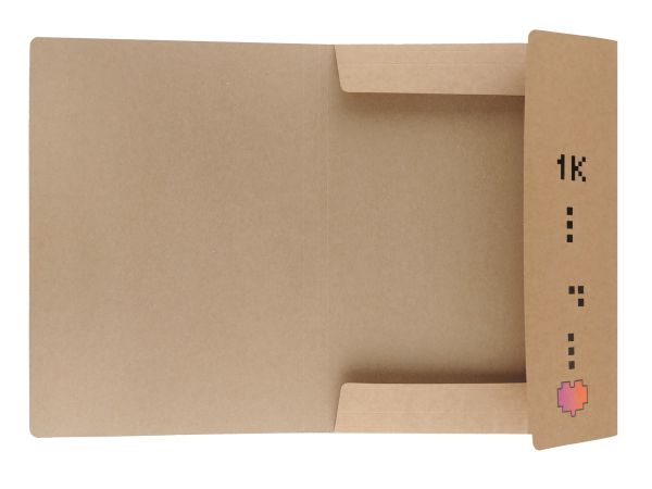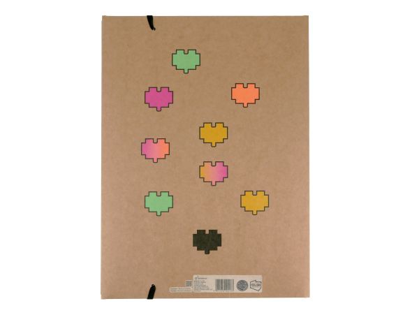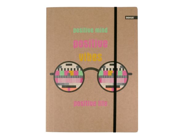 Teczka z gumką A4, wykonana ze sztywnego papieru typu kraft - 300g. Nadruk kolorowy, fluo, 4 wzory w zgrzewce