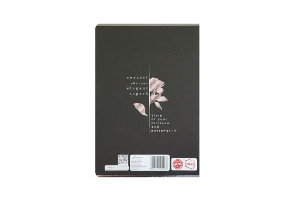 Zeszyt formatu A5. Ilość kartek 60, liniatura kratka. Okładka pokryta lakierem uv oraz punktowo metalizowana, zadruk kolorowy. Wysokość:21cm Szerokość: 14,7 cm. 4 wzory