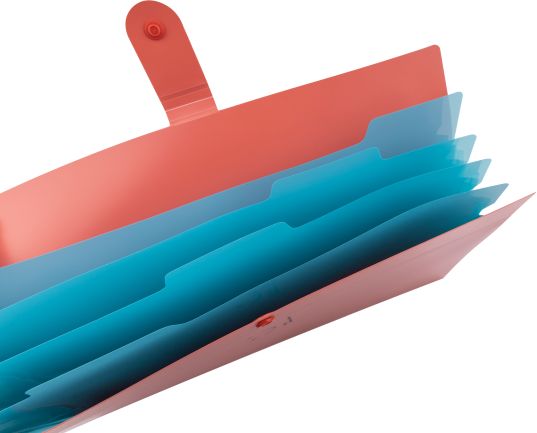 posiada 5 przegródek oddzielonych 4 registrami dla łatwiejszej organizacji dokumentów - miejsce na oznaczenie zawartości, co umożliwia sortowanie dokumentów według tematów lub alfabetycznie,