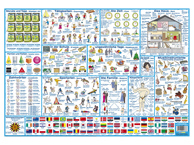 Obrazowy s³ownik polsko-niemiecki w formie podk³adu wykonany z solidnej, grubej, laminowanej tektury.