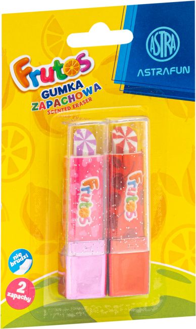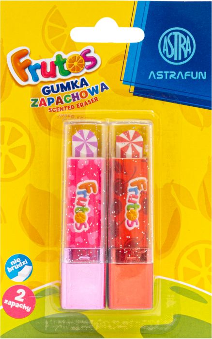 Zestaw dwóch zapachowych gumek do ścierania ASTRA FRUTOS w kształcie szminki to idealne połączenie funkcjonalności i atrakcyjnego designu. Gumki przyciągają owocowym zapachem oraz intensywnymi kolorami, co sprawia, że każde szkolne zadanie staje się przyjemniejsze. Wygodne opakowanie typu blister zapewnia łatwe przechowywanie.