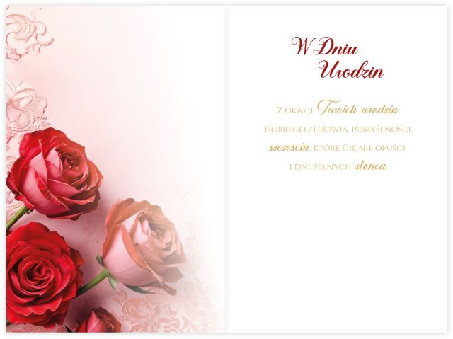 Ekskluzywna kartka urodzinowa B6, doskonała na eleganckie życzenia. Klasyczny design łączy piękne czerwone róże, delikatną koronkę oraz subtelne złocenia, tworząc wyjątkowy i luksusowy efekt. Wstążka z ozdobnym kamieniem dodaje kartce trójwymiarowego akcentu, podkreślając jej elegancję i wyjątkowość.