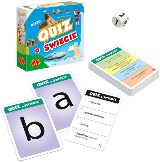 Quiz o ¦wiecie to wci±gaj±ca gra edukacyjna, która zabierze Ciê w podró¿ po wszystkich kontynentach i dziedzinach wiedzy! Odkryj tajemnice geografii, historii, przyrody, nauki, techniki, kultury i sztuki dziêki 184 pytaniom i 552 odpowiedziom. To doskona³a okazja, by poszerzyæ horyzonty i sprawdziæ swoj± wiedzê w inspiruj±cej rywalizacji!