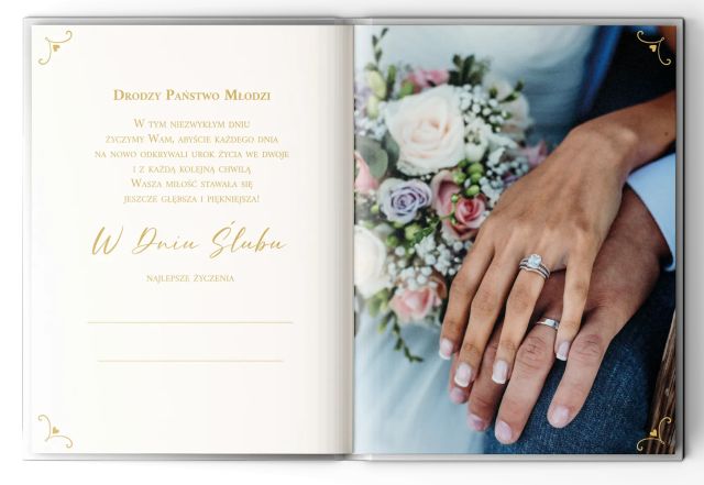 Pamiątkowa książeczka ślubna ARMIN STYLE PA-07 złocona z cytatami i kopertą "Gratulacje z okazji Waszego Ślubu" 20x15cm