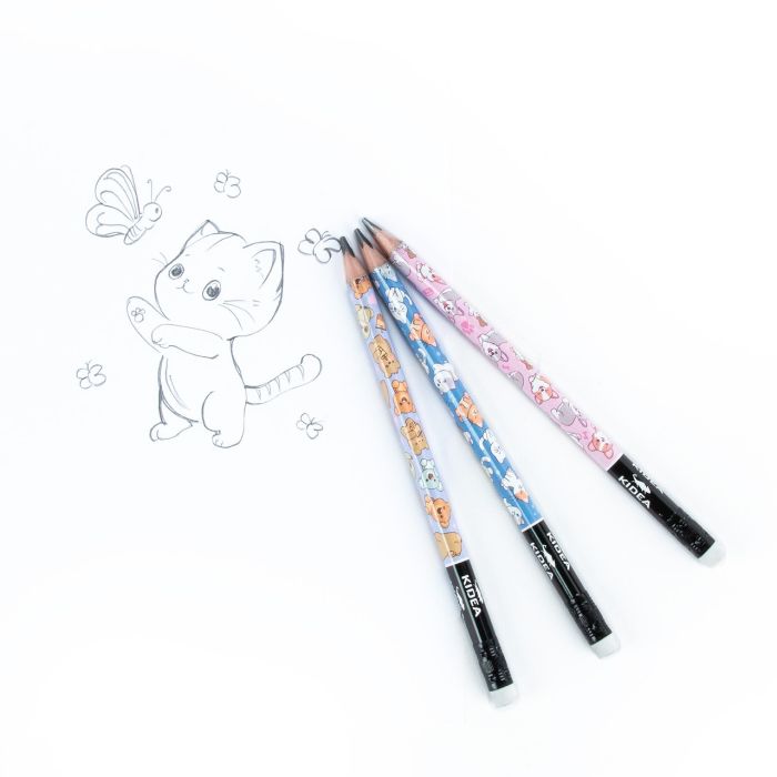 Ołówek trójkątny jumbo ze słodkim nadrukiem zdecydowanie zachwyci każdego fana zwierzątek. Ergonomiczny i trójkątny kształt ułatwia prawidłowy chwyt i zapewnia wygodne użytkowanie. Drewniane ołówki z rysikiem HB zakończone gumką, sprawdzą się doskonale podczas nauki pisania i rysowania. Już od najmłodszych lat ćwicz razem z KIDEA motorykę, która jest odpowiedzialna za precyzję ruchów oraz zręczność.