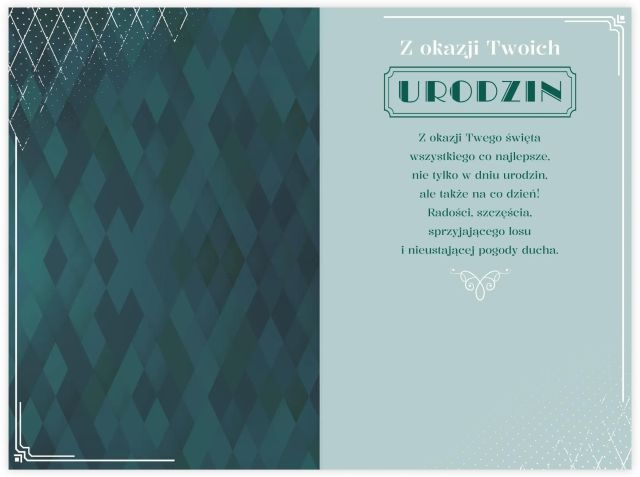 Karnet B6 „Z okazji Twoich urodzin” to elegancka kartka premium w klasycznym stylu z dekoracyjną typografią i złoceniami. Idealna propozycja dla klientów szukających ponadczasowej formy życzeń.