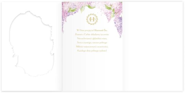 Elegancka kartka komunijna B6 LUX to wyjątkowa propozycja na Pierwszą Komunię Świętą, utrzymana w subtelnej i dekoracyjnej stylistyce. Motyw kielicha eucharystycznego oraz kwiatów w odcieniach różu i fioletu nadaje całości uroczysty, delikatny charakter. Złocone detale i efektowne elementy przestrzenne podkreślają eleganckie wykończenie oraz sprawiają, że kartka doskonale prezentuje się jako produkt premium. Wewnątrz znajdują się gotowe życzenia religijne, dzięki czemu kartka jest od razu gotowa do wręczenia.
