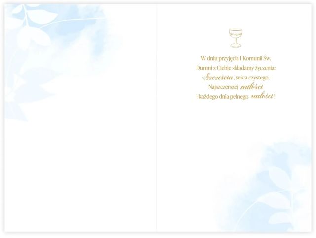 ✔ Wnętrze: nadrukowane życzenia komunijne
